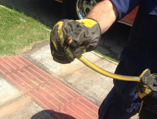 A primeira ocorrência foi registrada às 9h50, em São José. Uma jararaca, espécie altamente venenosa, foi encontrada por uma moradora dentro de sua máquina de lavar roupas. O caso foi registrado na rua Nossa Senhora dos Navegantes, no Jardim Zanellato.